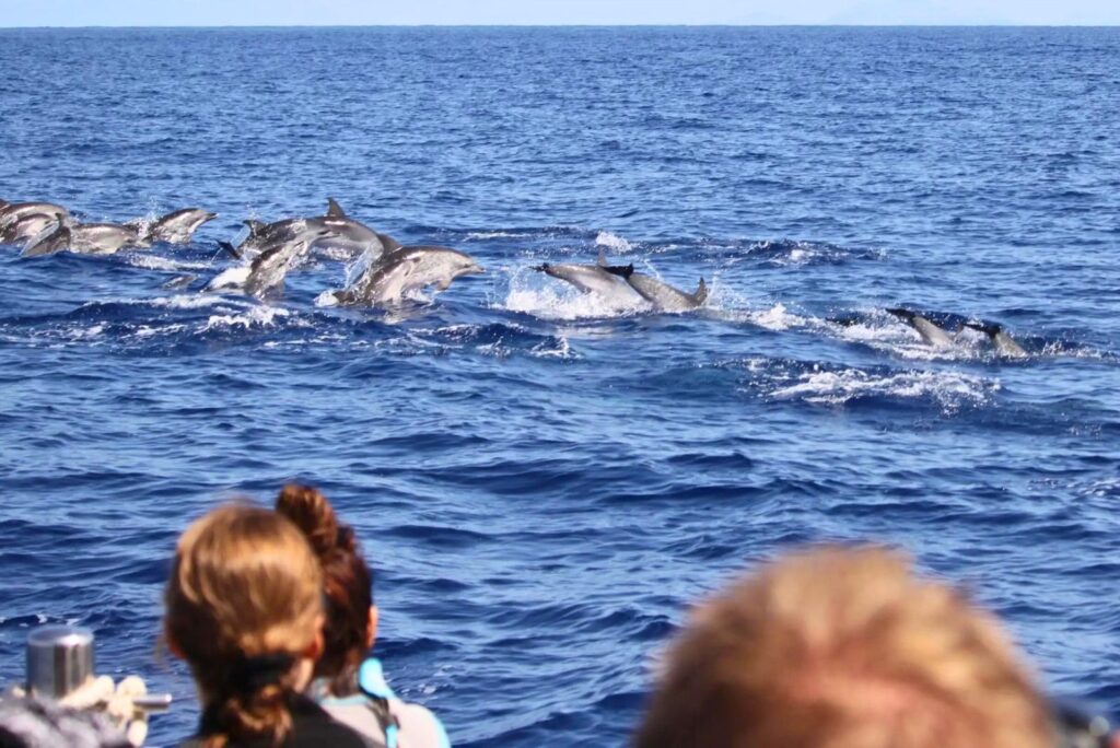Regulated cetacean watching tours do not permit swimming with dolphins — IFCN rules prohibit entering the water near cetaceans. Any operator offering this should be treated with caution.
